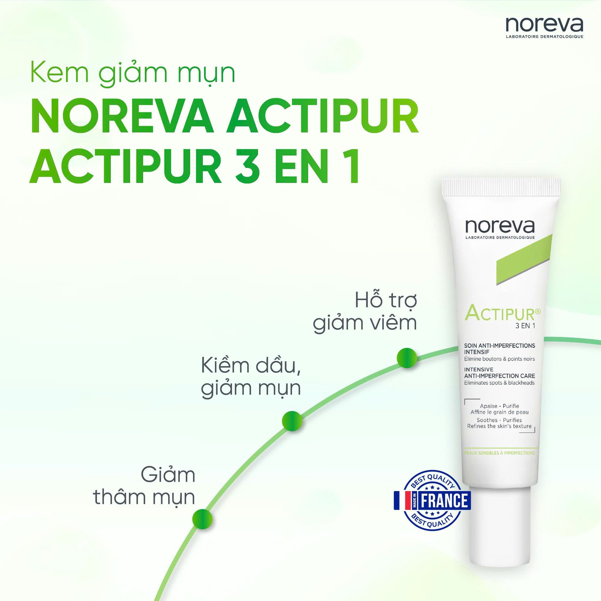 Và để kết thúc bản "hòa ca" hoàn hảo này, chúng ta có Actipur Actipur 3 trong 1 Kem giảm mụn. Đây là một "chiến binh" đa năng với khả năng hỗ trợ giảm viêm, kiềm dầu và đặc biệt là hiệu quả giảm mụn.