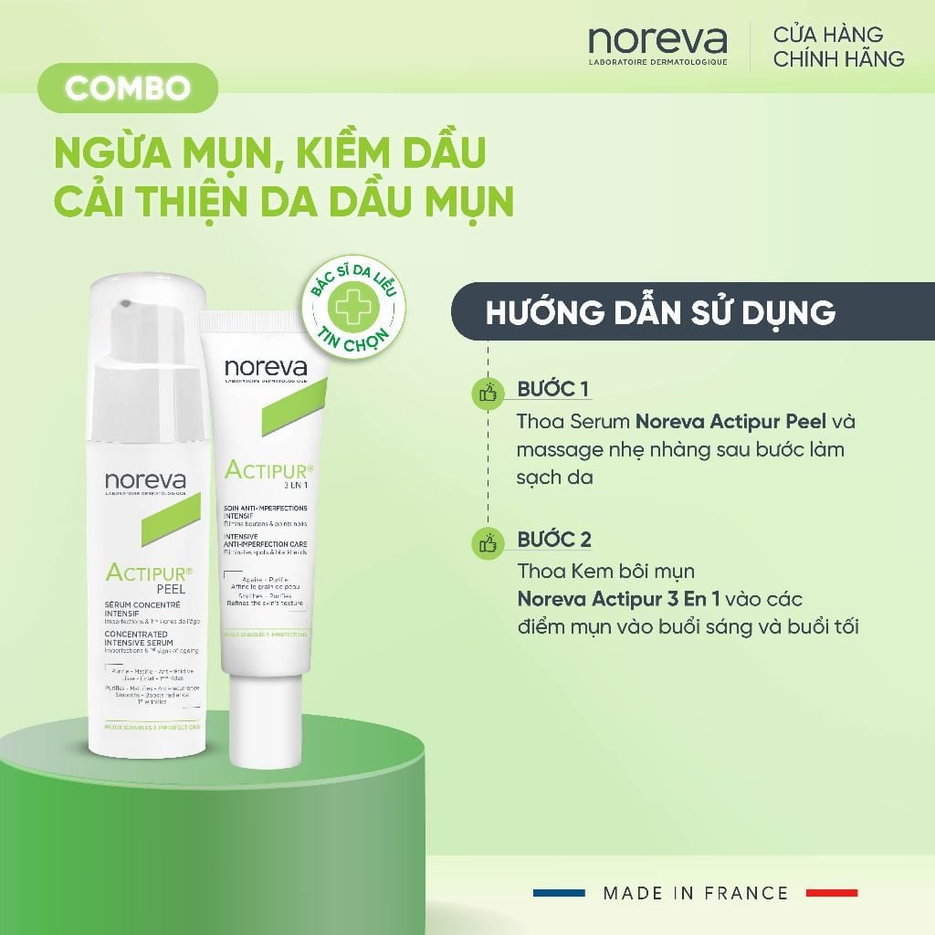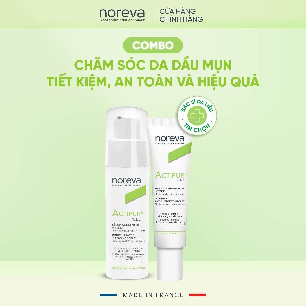 Combo 2 Bước Chăm Sóc Da Dầu Mụn – Serum Noreva Actipur Peel & Kem Bôi Noreva Actipur 3 En 1