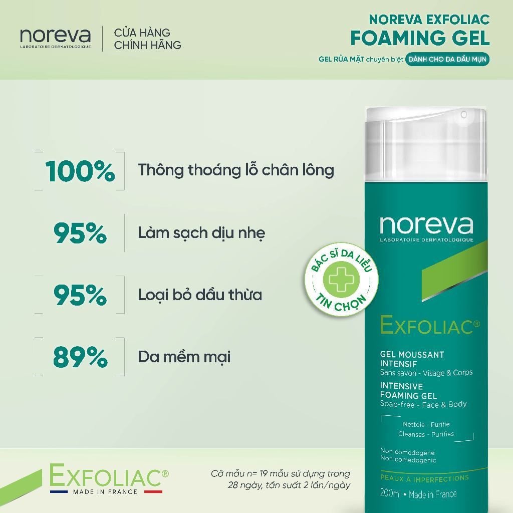 #GelRửaMặt #Noreva #Exfoliac #ChămSócDa #KiểmSoátDầu