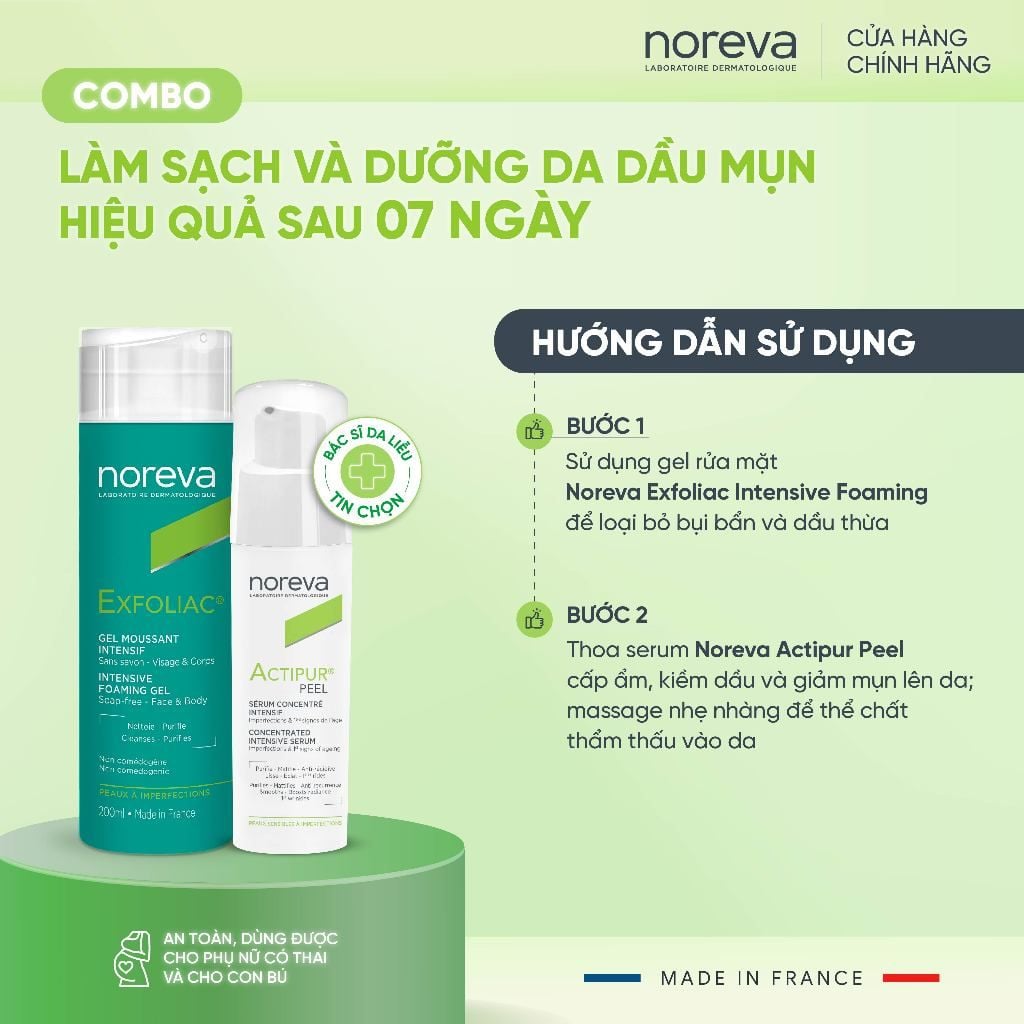 #Noreva #Exfoliac #Actipur #FoamingCleansingGel #Serum #ChămSócDa #DầuMụn #ComboHiệuQuả
