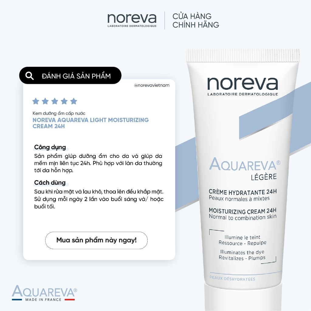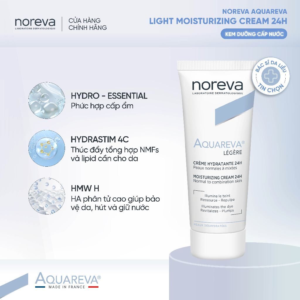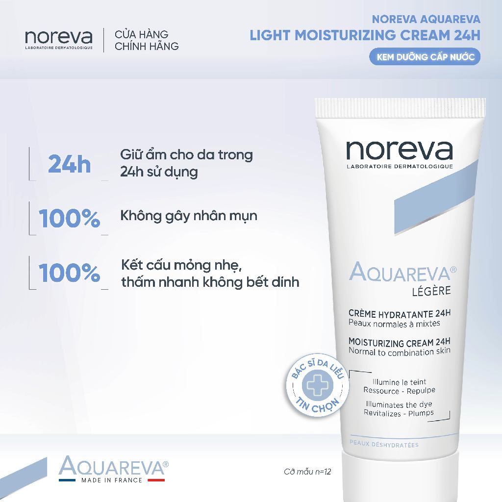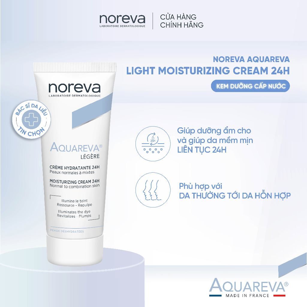 🔹 Noreva Aquareva Moisturizing Serum 24H là kem dưỡng giúp cung cấp độ ẩm và hỗ trợ duy trì làn da mềm mại.