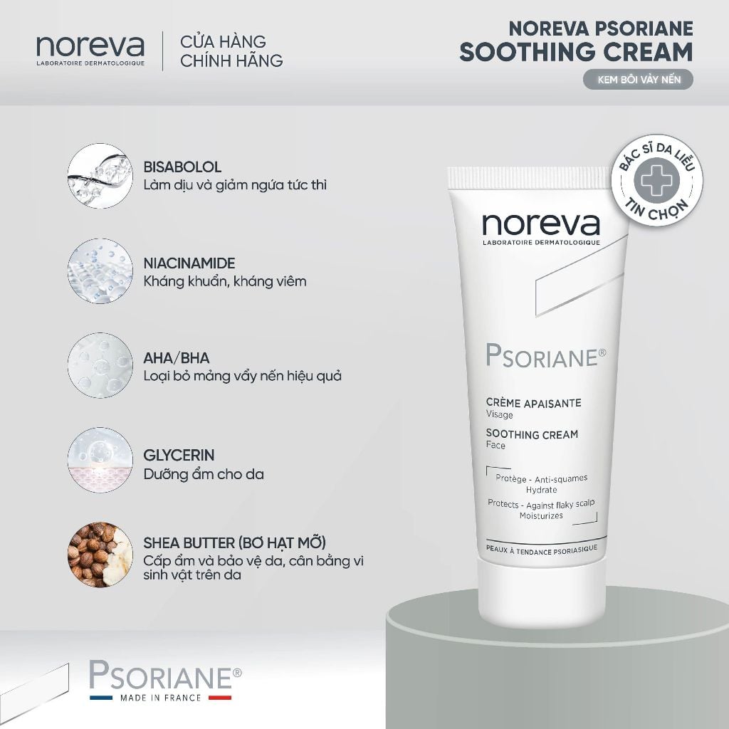 👩⚕️ Noreva Psoriane Soothing Cream là kem dưỡng giúp làm dịu da, hỗ trợ dưỡng ẩm sâu và cải thiện tình trạng khô bong tróc.